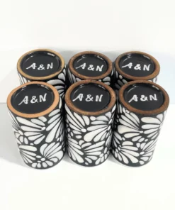TEQUILERO PERSONALIZADO EN LA BASE FONDO NEGRO MIK BLANCO INICIALES