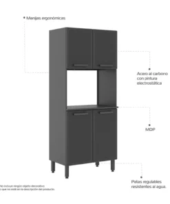 Diseño exclusivo para los amantes de la sofisticación. La Línea Estilo trae lo mejor en diseño, innovación y tecnología. Su color y manijas exclusivoas Black Piano son los elementos centrales de una línea refleta de sofisticación y modernidad. Fabricado 100% en acero al carbón. ¡Beneficios que una Cocina de acero ofrece a usted! – Mayor durabilidad: Gracias a su pintura electrostática que le permite una vida útil más larga. – Una casa más saludable con muebles inmunes a insectos: Los insectos no encuentran alimento en ella y las bacterias no logran fijarse en la superficie lisa. – Resistente a la humedad: Su superficie no porosa dificulta la absorción del agua, evitando deformaciones en el material. – Muebles libres de olores: El proceso de pintura electrostática no permite que los olores se impregnen en los muebles durante su vida útil, además de eso posee superficie lisa lo que permite fácil limpieza. -Producto no inflamable: Una opción más segura para las residencias y empresas.