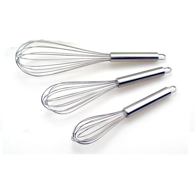 Set de 3, Grande 10 pulgadas, medio 8 pullgadas, pequeño 6 pulgadas robusto mango proporciona un agarre cómodo y firme; la construcción de acero inoxidable un Buen asistente para batir los huevos, la mezcla de azúcar glas y chocolate derretido crema fresca.Utensilio de Cocina profesional-Garantizado Para Durar.Ideal para batir aire en las mezclas.