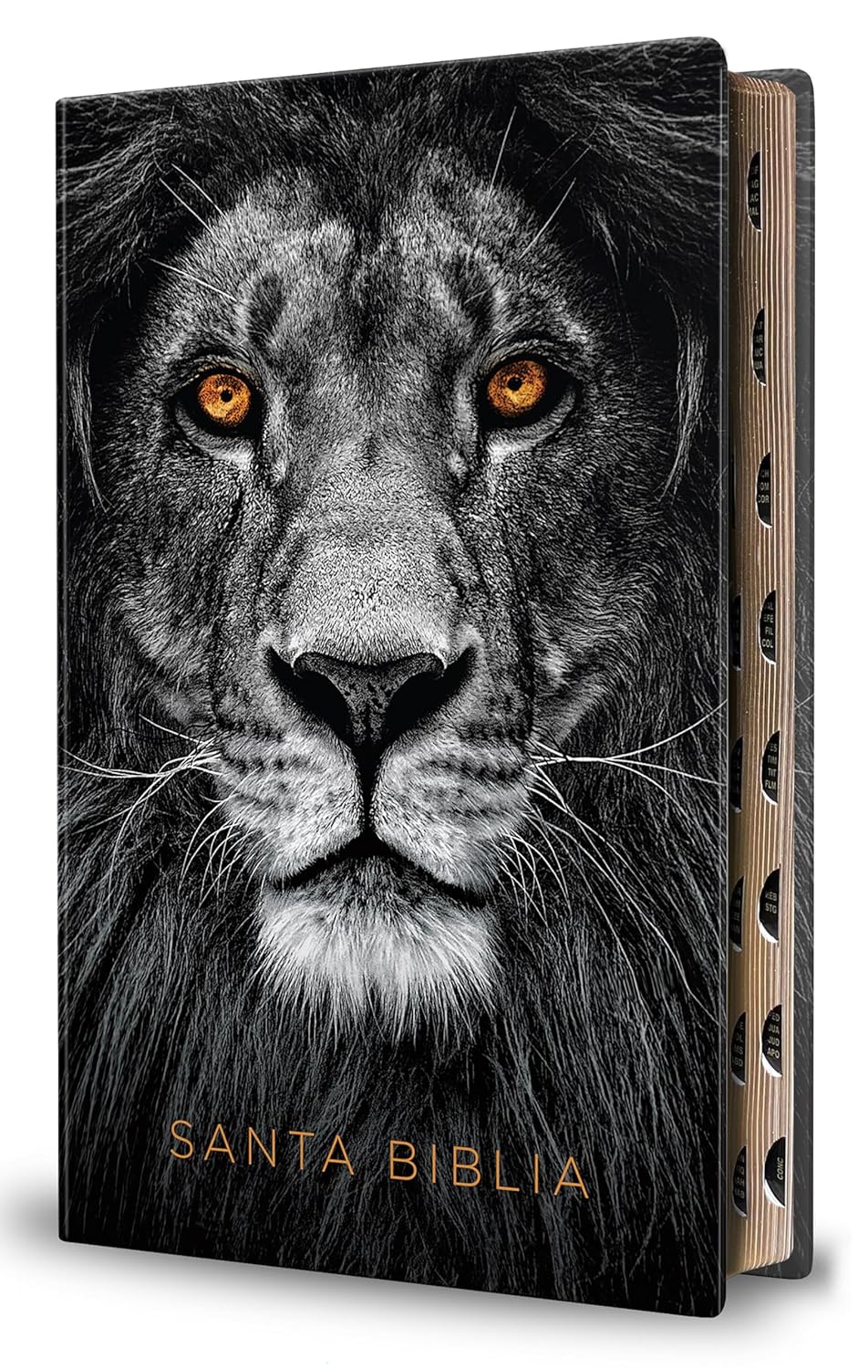 Biblia tamaño manual, ultrafina y con letra grande. León de Juda, simil piel con índice cinta marcadora y fotos a color de Tierra Santa.
