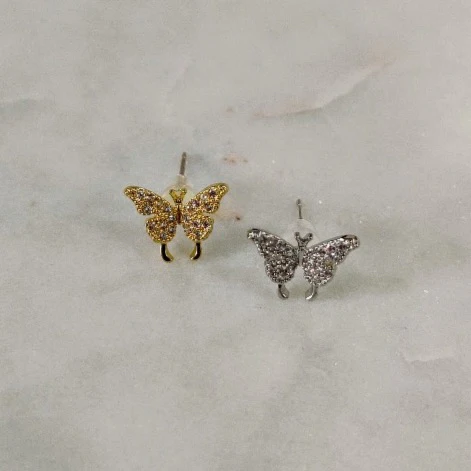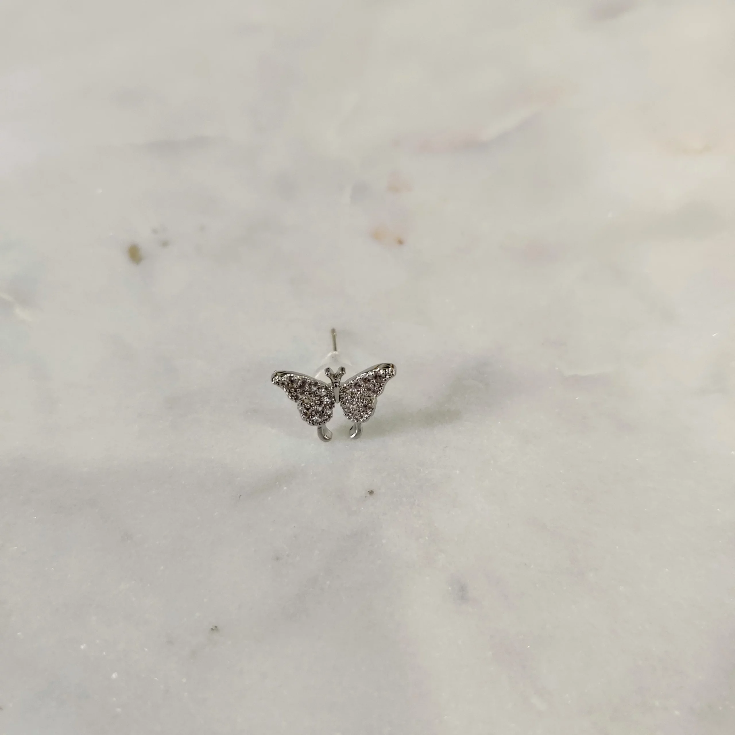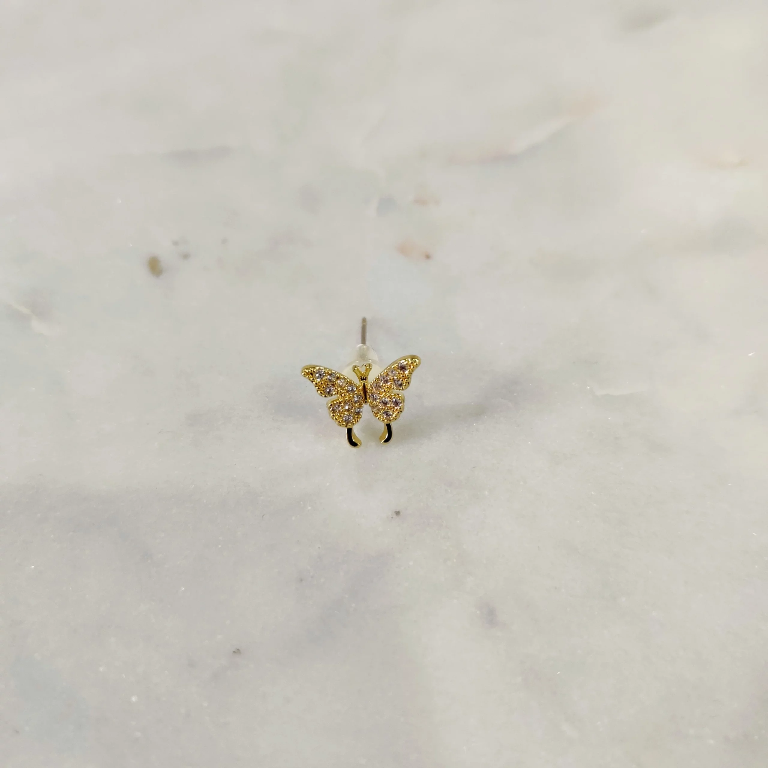 Arete fabricado en aleacion de metales con zirconias cubicas tipo earcuff con diseño de mariposa.