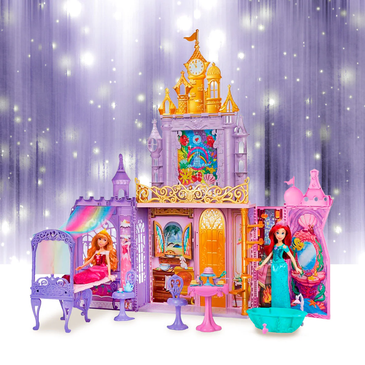 - Descubre la magia del Castillo Fold N Go Portátil de Princesas Disney, un reino de fantasía en un vibrante tono morado que captura la esencia de los cuentos de hadas.