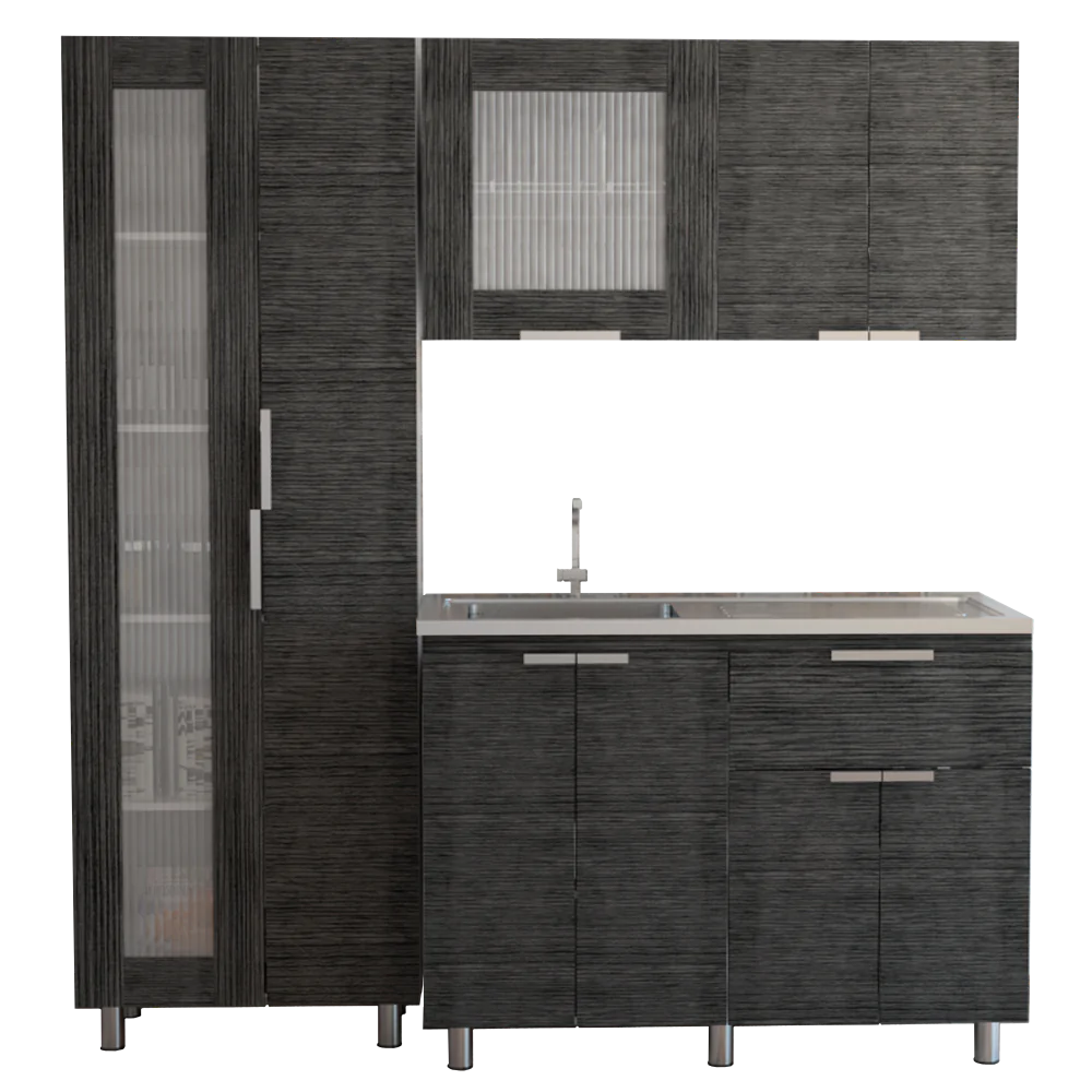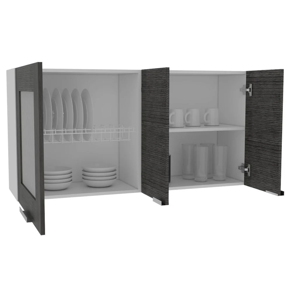 Gabinete Superior, con 3 puertas de lámina de acrílico ranurado, cajón. Incluye locero, manijas de aluminio.