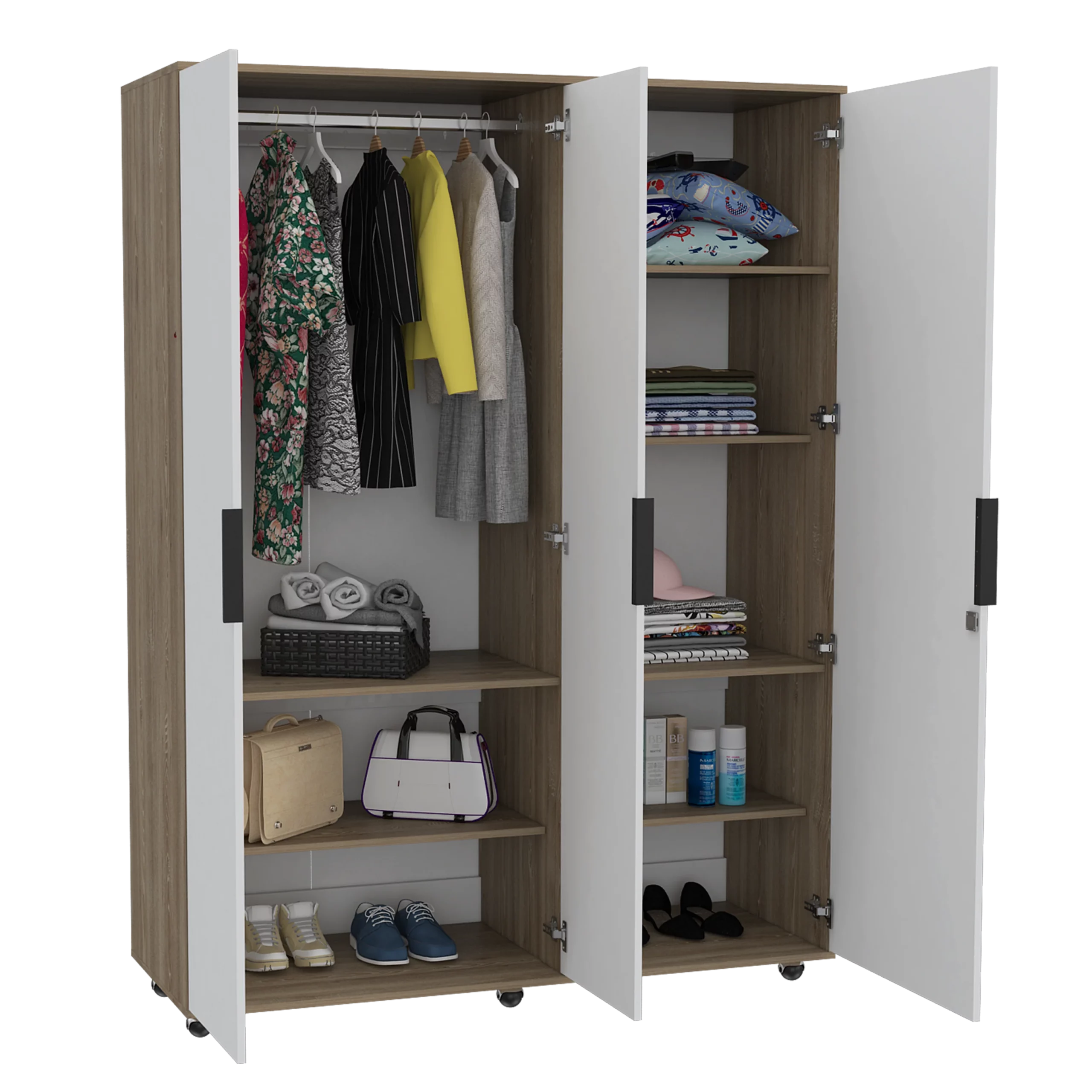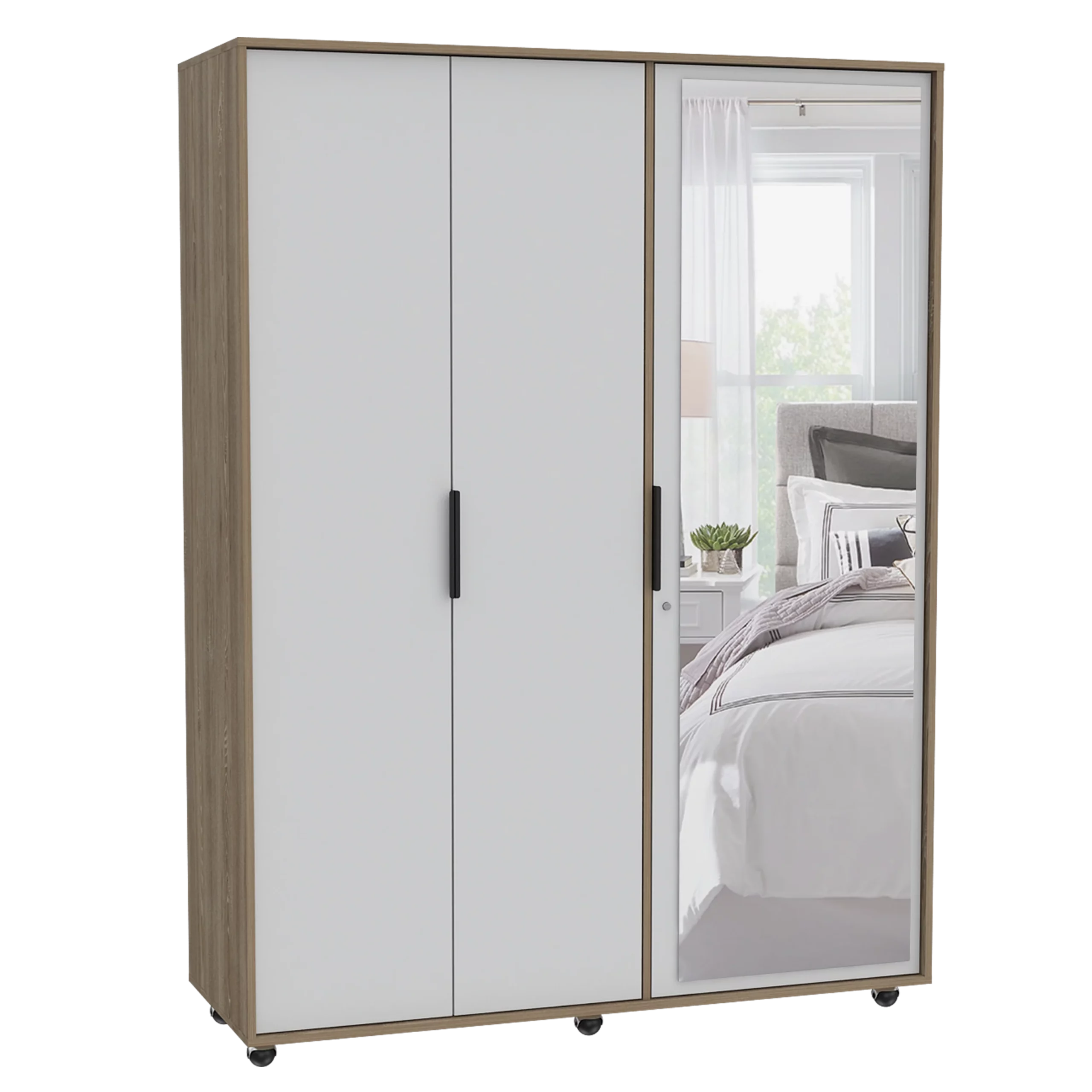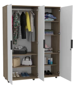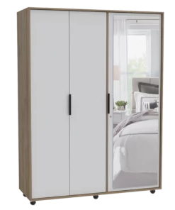 Closet, con diseño moderno, 3 puertas con manija de aluminio y un tubo para colgar ropa y 6 entrepaños para ubicar objetos.