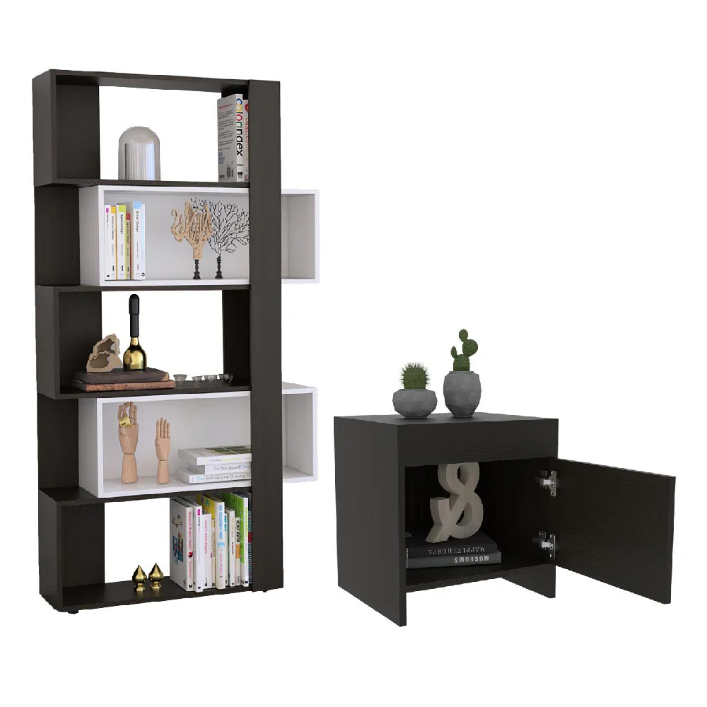 Elaborado en Madera aglomerada MDP, recubierta con láminas melamínicas de excelente calidad, en color Wengue y Blanco.