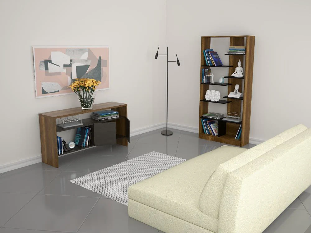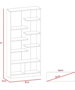 Biblioteca, con múltiples repisas de amplio espacio para colocar todo tipo de objetos.