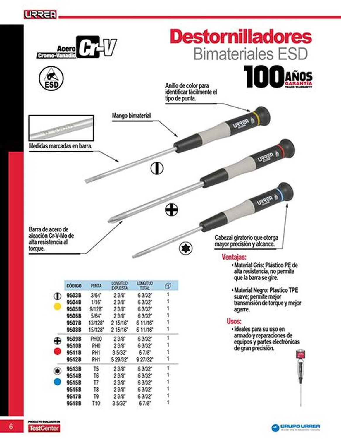 Destornillador ESD plana 1/16″ x 1-9/16″ Urrea 9504B