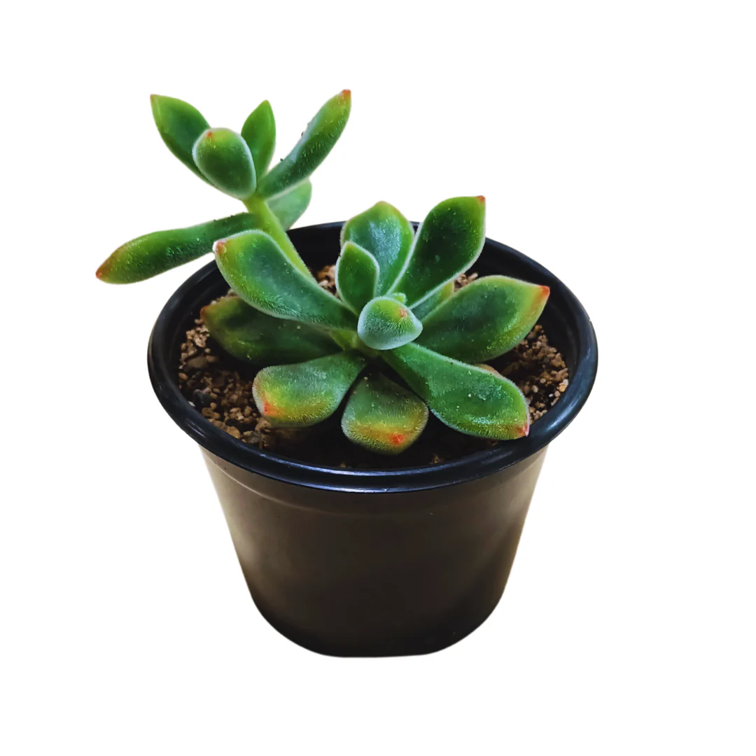 Planta suculenta en maceta de plástico de 4 pulgadas con sustrato especial.