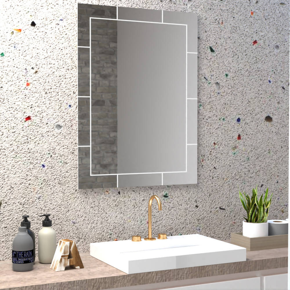 * Espejo rectangular con diseño en sandblasting