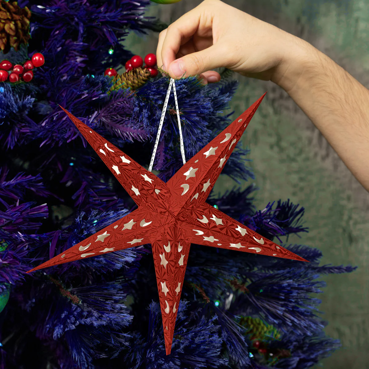 - Ilumina tus espacios navideños con esta hermosa estrella decorativa de papel en color rojo, ideal para cualquier rincón de tu hogar, escuela u oficina.
