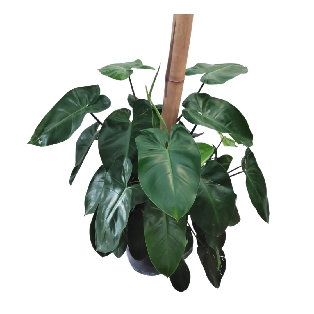 Planta tropical trepadora de hoja grande en maceta de 12 pulgadas y una altura aproximada de follaje de 1 metro.