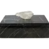 Caja rectangular de vinipiel gris con detalle dorado y cuarzo transparente.