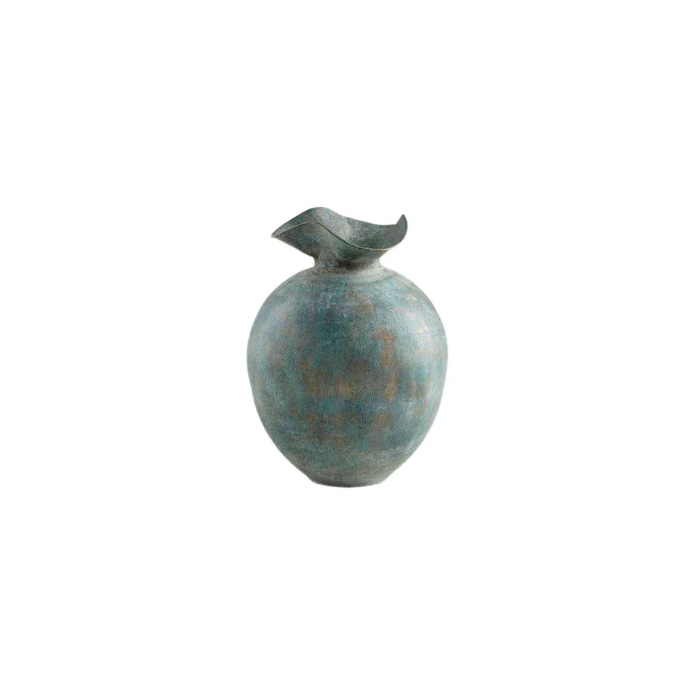 JARRON DECORATIVO EN TONOS AZULES CON DETALLES EN COBRE