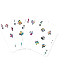 En el paquete: 54 cartas: trébol, diamante, corazón y picas y 2 comodines.