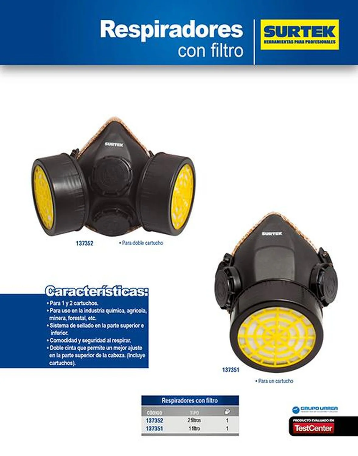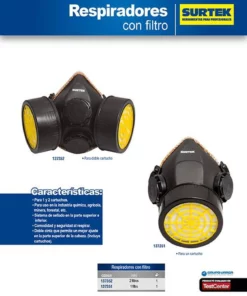 MARCA: Surtek DESCRIPCION DEL PRODUCTO: -Mascarilla respirador 2 filtros Surtek-Para uso en la industria química, agrícola, minera, forestal, etc.-Sistema de sellado en la parte superior e inferior-Comodidad y seguridad al respirar-Doble cinta que permite un mejor ajuste en la parte superior de la cabeza-Incluye cartucho ESPECIFICACIONES TECNICAS: -Incluye: 2 Cartucho-Material: Plástico-Conexión: Rosca-Tipo: 2 Filtros-Tipo De Ajuste: Doble Correa-Válvula De Exhalación: Si CONTENIDO DEL PAQUETE: Mascarilla respirador GARANTIA: Sin garantía ALTO EN CM: 21 LARGO EN CM: 8.5 FONDO EN CM: 17.8 PESO EN KG: 0.283