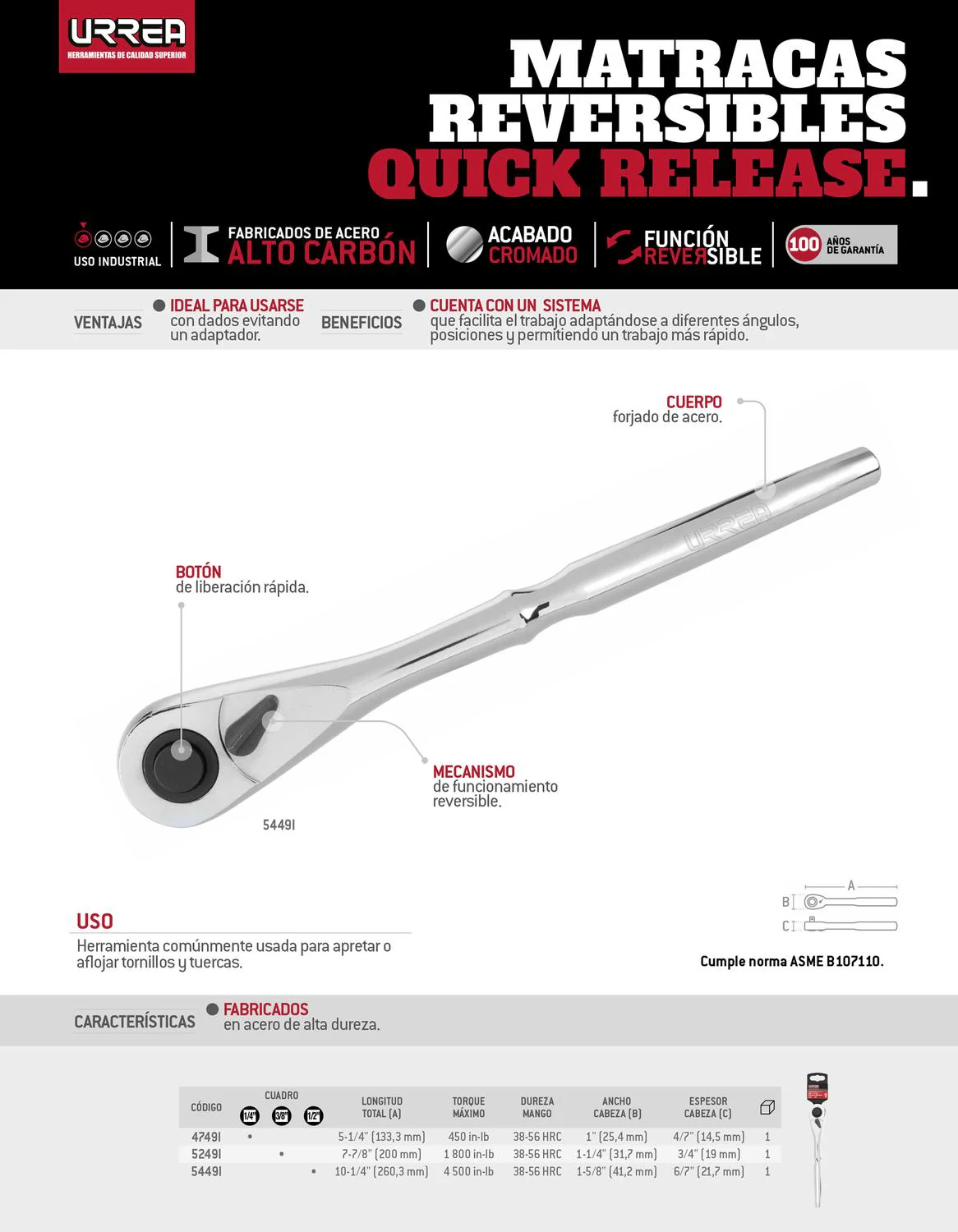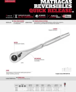 -Matraca 1/2″. Cuerpo de acero cromado.