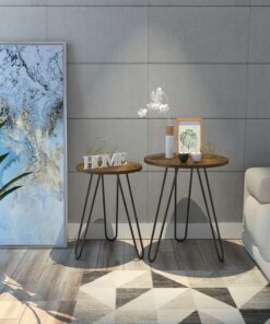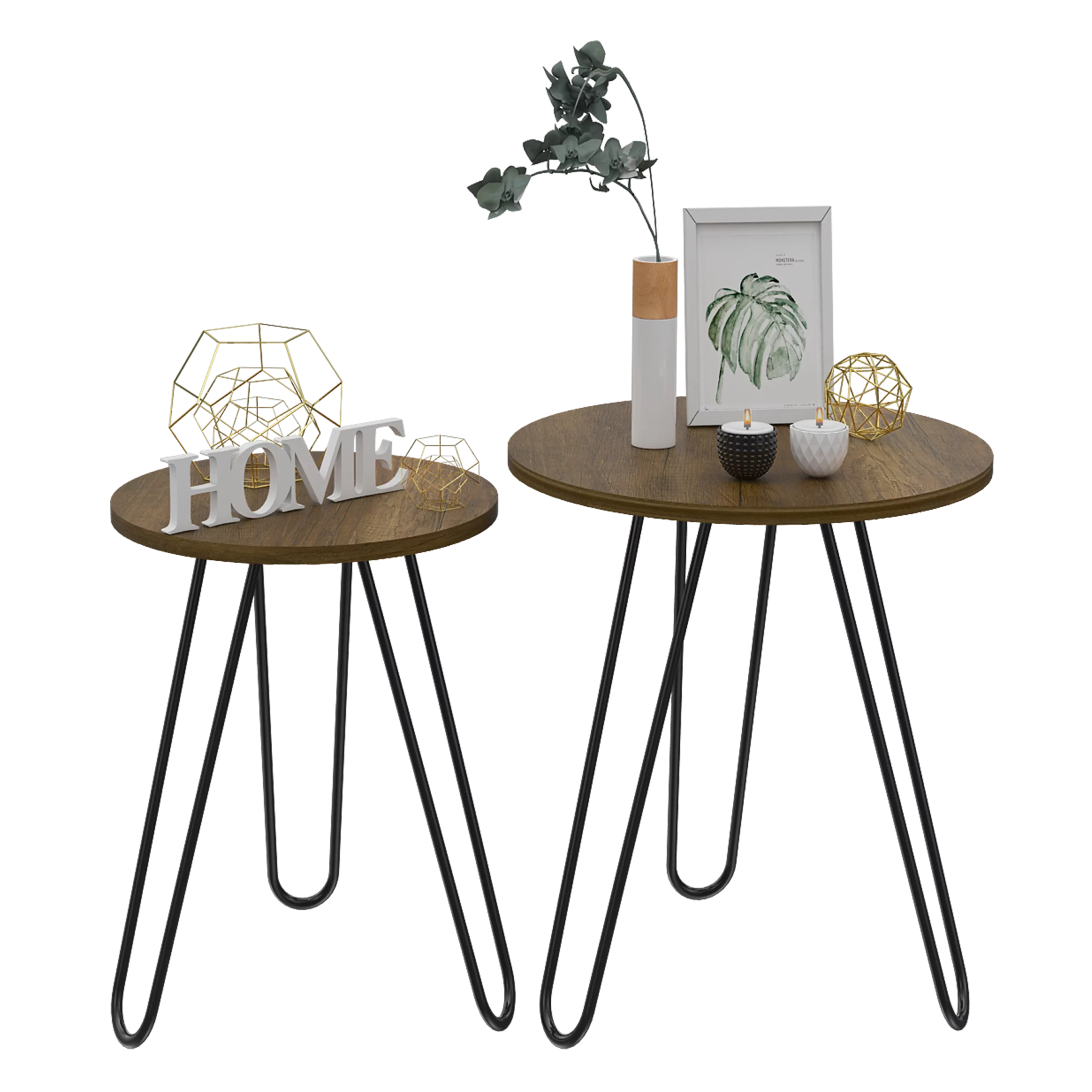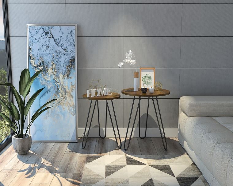 Mesa Auxiliar x 2 unidades, con patas metálicas, ideal para ubicar objetos decorativos.