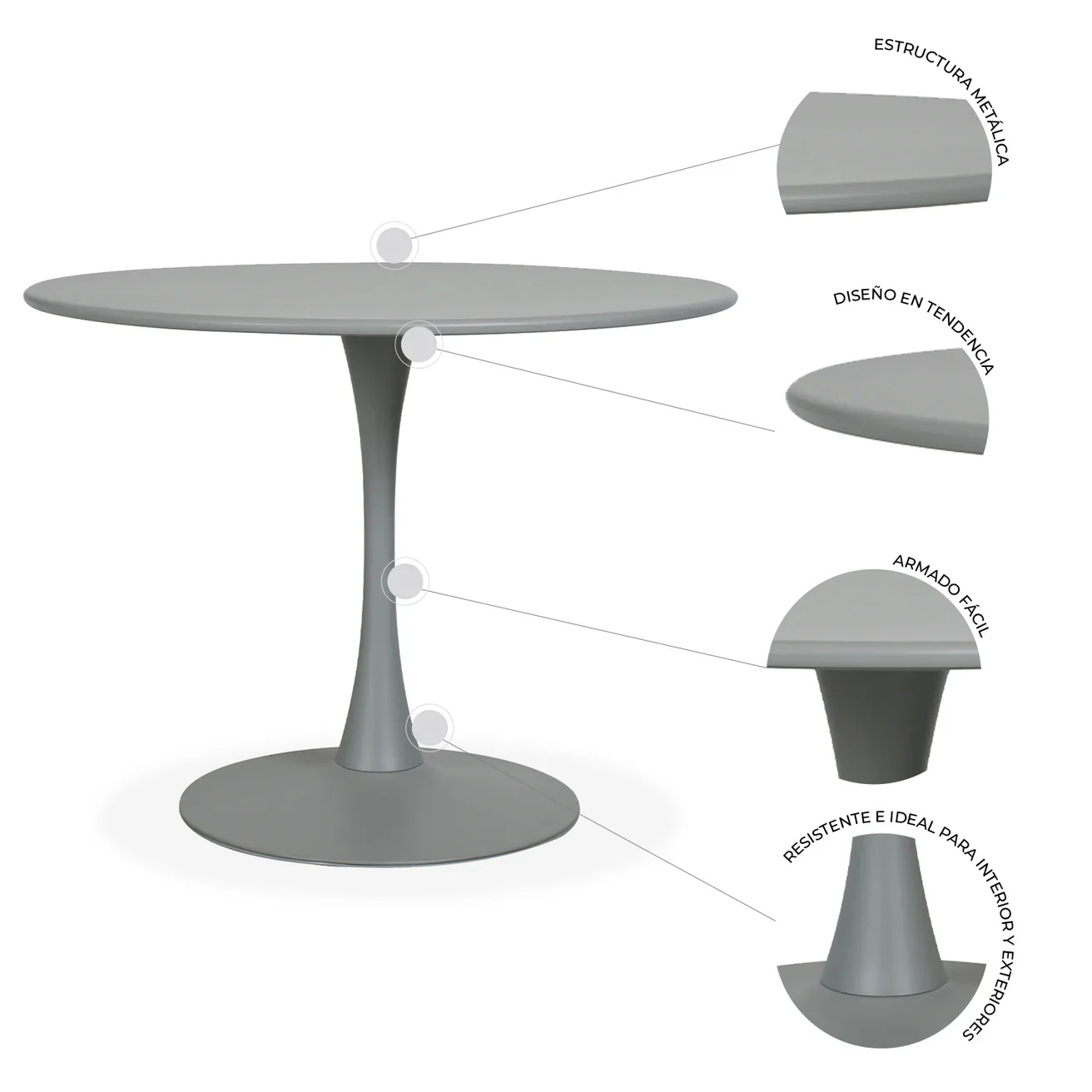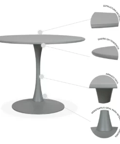 Mesa Vittoria 80Cm: Mesa de Comedor Fabricada en metal con pintura electrostática de color blanco y gris.