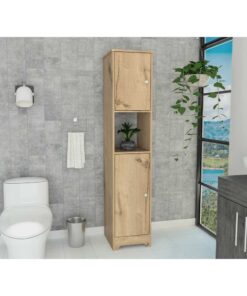 Mueble auxiliar para baño múltiples superficies para almacenamiento de objetos de aseo, de fácil armado y dos puertas abatibles