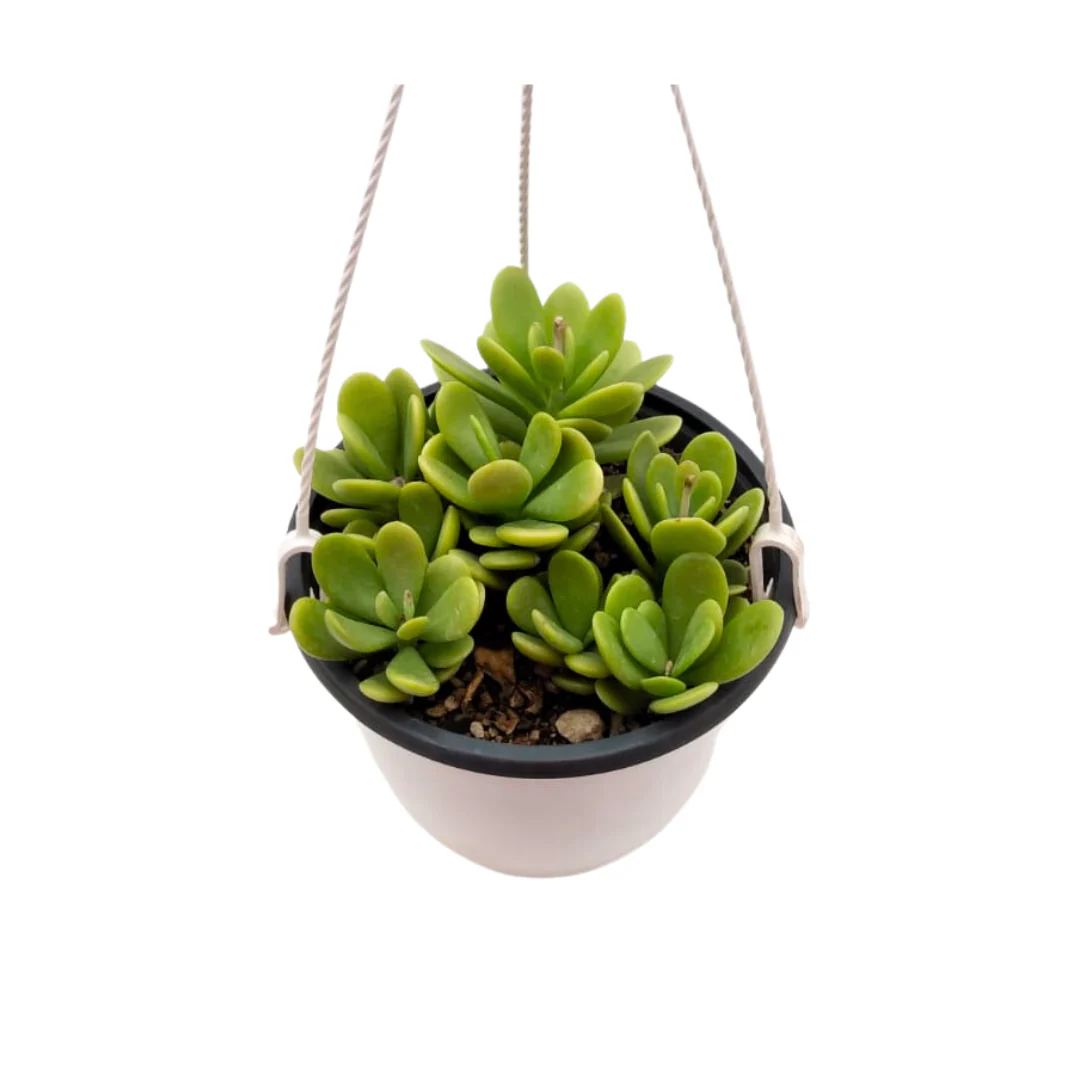 Planta suculenta en maceta de plástico de 5 pulgadas colgante con sustrato especial.