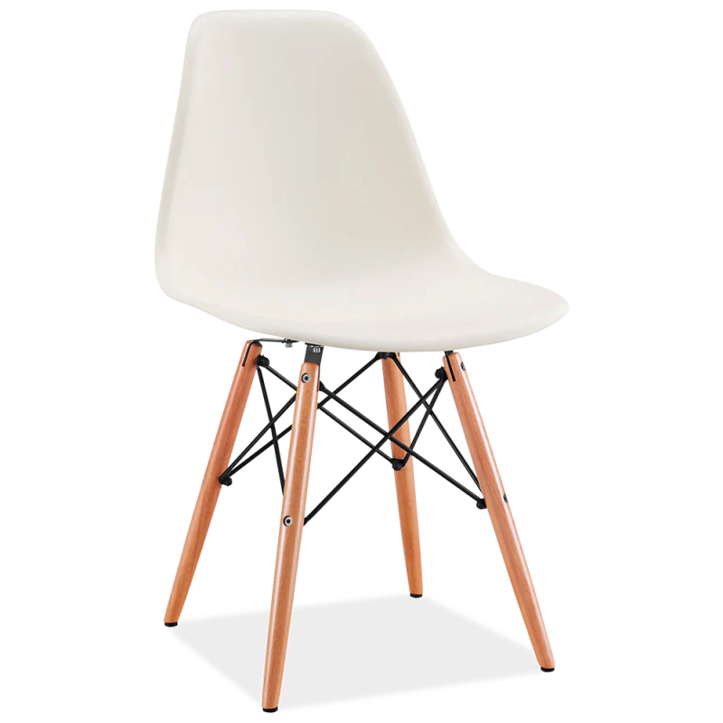 Silla de polipropileno con base de Madera tono natural. Estilo Eames DSW.