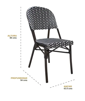 El asiento y respaldo están hechos de textileno lo que hace que la silla sea cómoda, pero con apariencia elegante y clásica. Es un modelo práctico ya que son apilables, lo que facilita su almacenamiento. Es ligera para ser más práctica al transportarse a cualquier parte de su hogar, negocio o jardín.