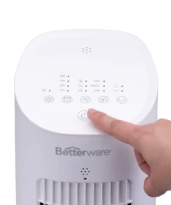El ventilador más completo es el Ventilador Torre Fresh Betterware. Esta solución para tu hogar cuenta con 3 soluciones en 1: ventilador, enfriador y aromatizante. El ventilador tiene un gran potencia de 45 watts, 3 velocidades y 3 modalidades de aire, además puede enfriar el aire gracias a los gel packs incluídos que debes agregar al contenedor de agua de 3 L para recibir aire frío hasta por 4 horas. Cuenta con temporizador de 8 hrs, es silencioso con panel touch y una oscilación de 50°. Su difusor de aroma incluye 4 esponjas de repuesto y filtro lavable. Tiene una altura de 97.5cm e incluye control remoto.