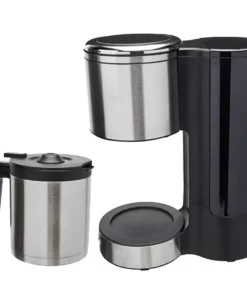 Cuerpo de acero inoxidable con acabado cepillado y botones cromados le dan a la cafetera WMF un estilo elegante y funcional.